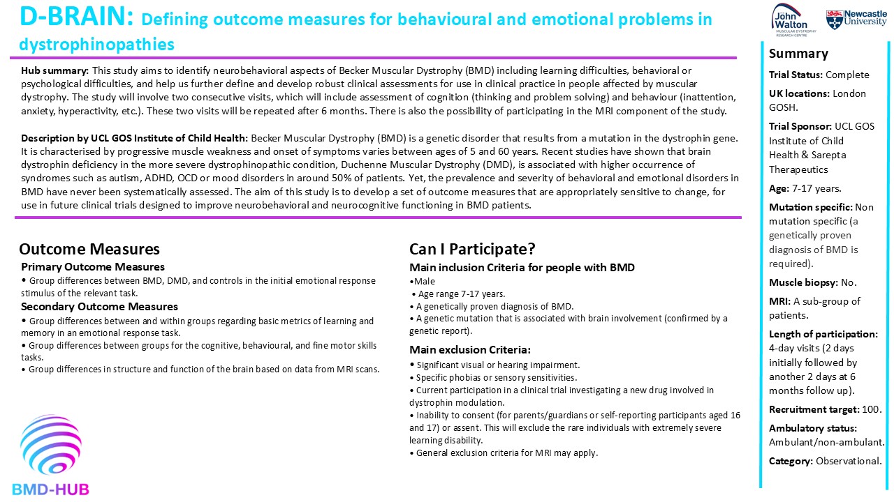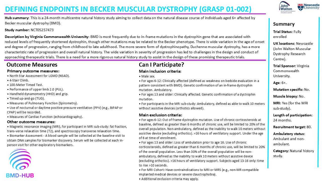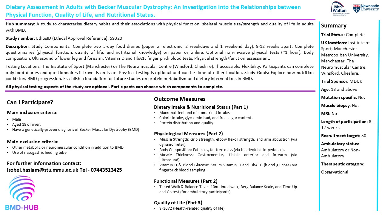 If you are interested in joining one of the clinical trials, you should contact us, the BMD Hub Coordination Team, at bmdhub@newcastle.ac.uk